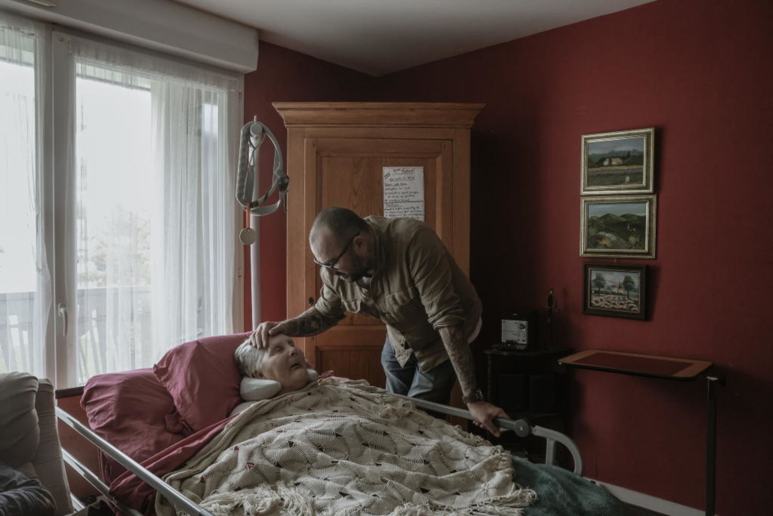 Fin de vie, Sebastien Forget au coté de sa mère Jeanne, en 2017 il a ete aquitté pour avoir essayé de permetre de mourir à sa demande. Bayeux.