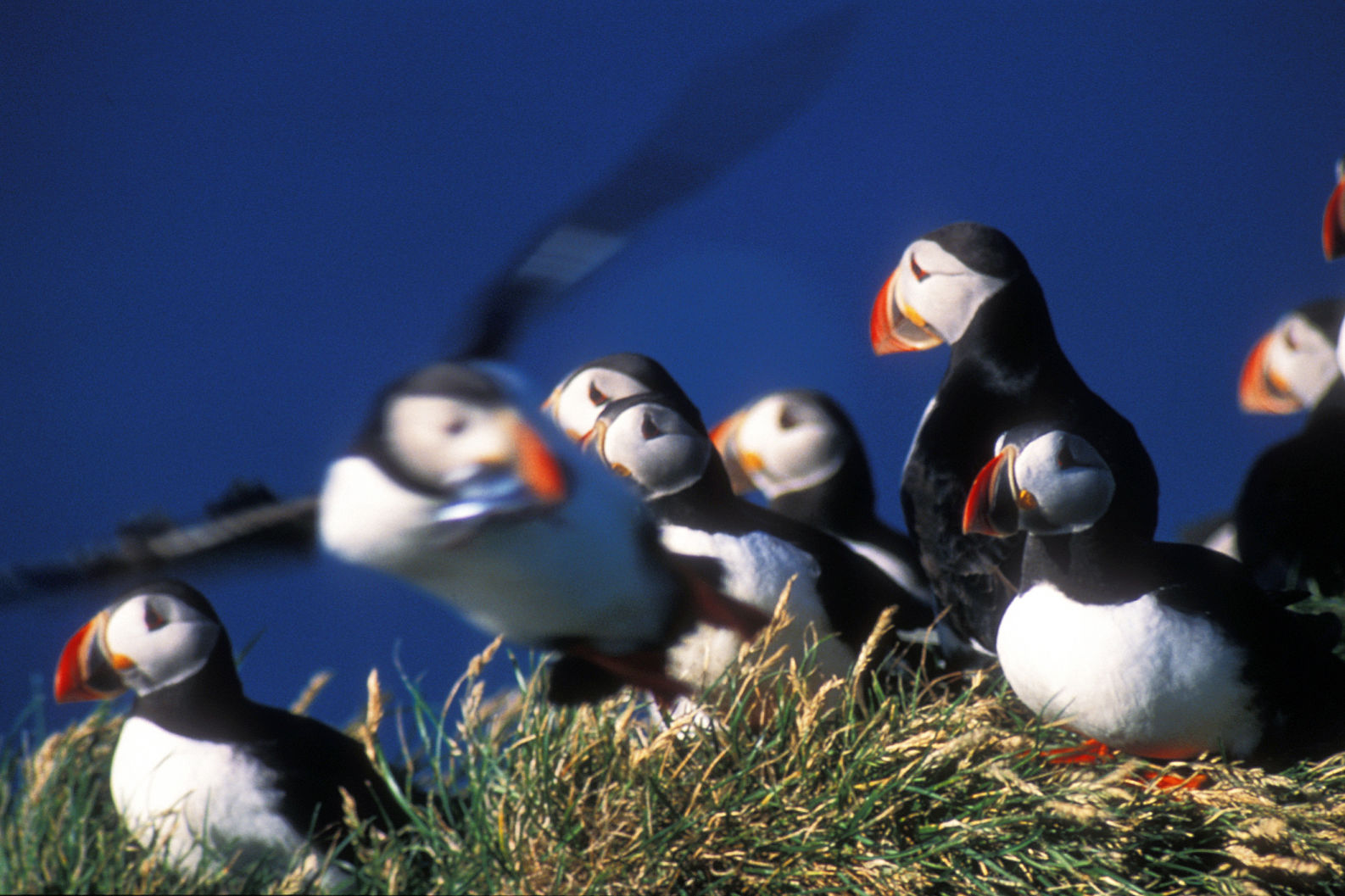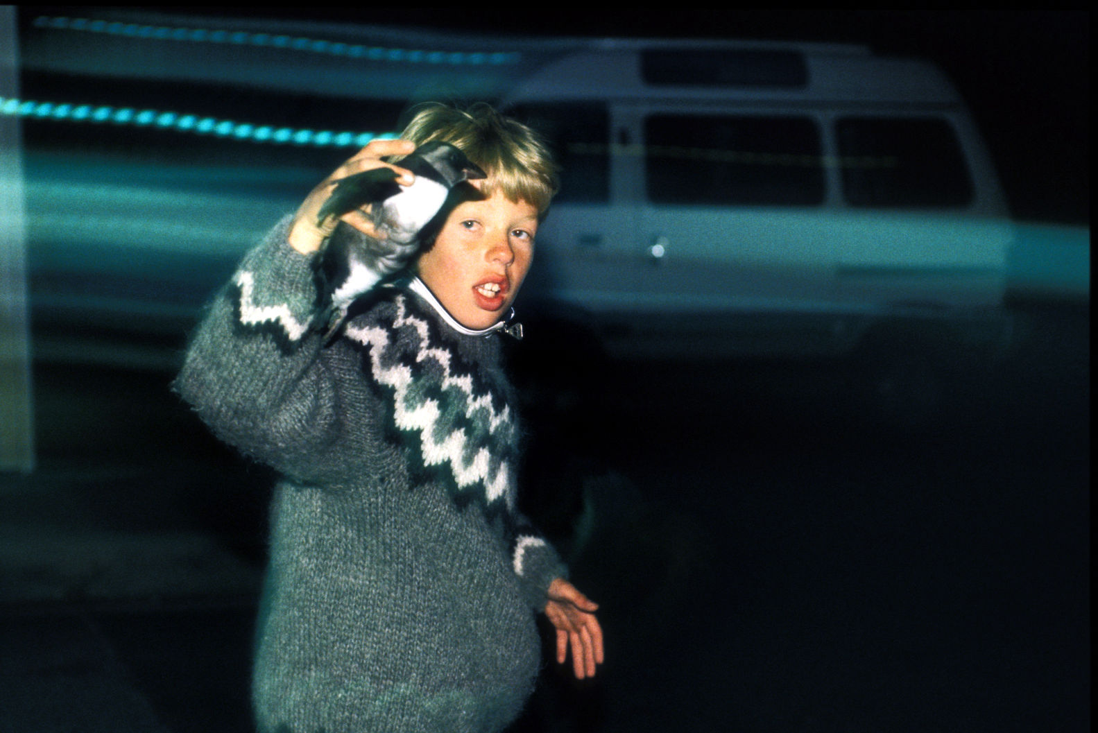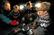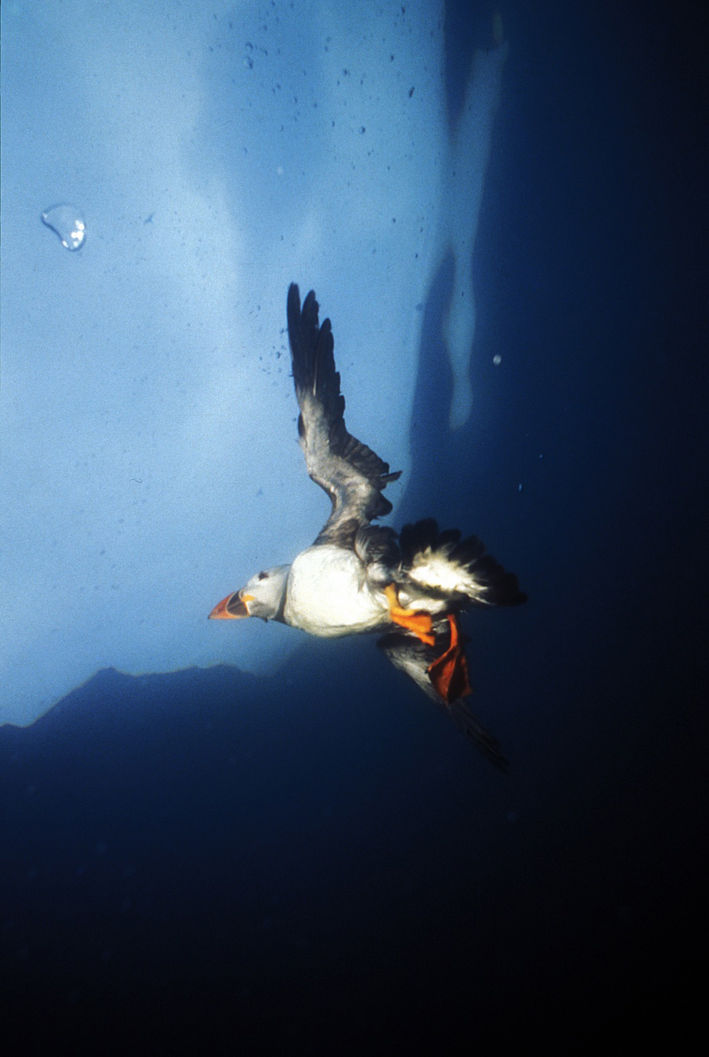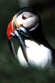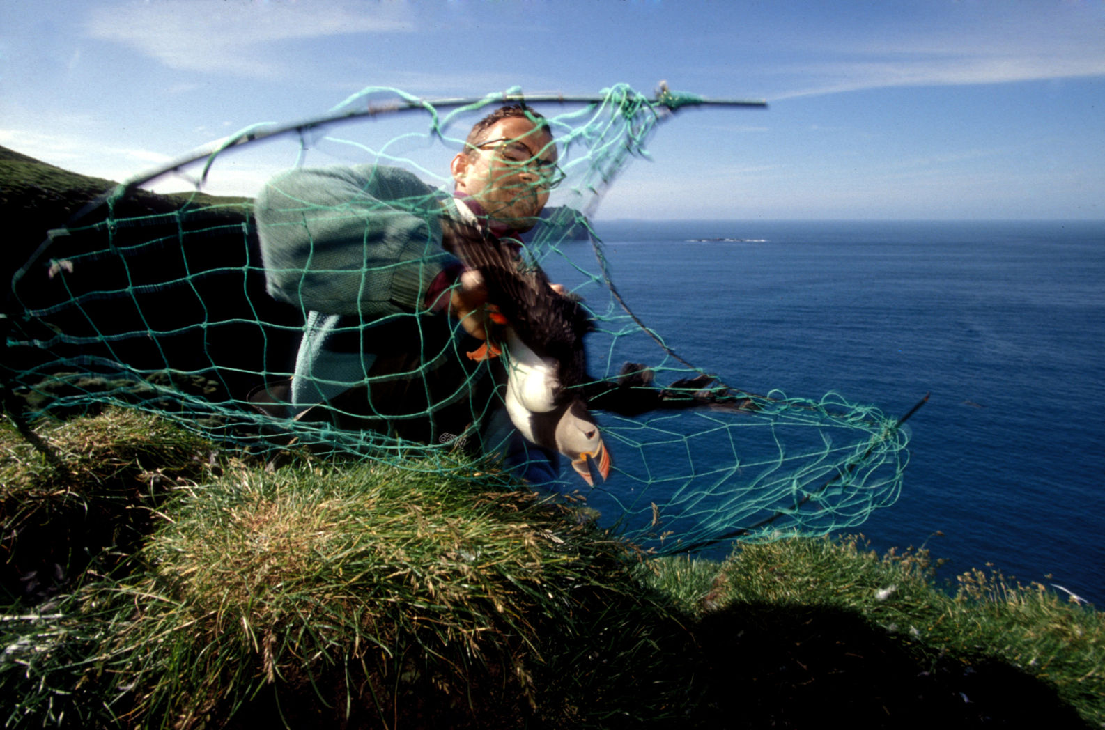 Aux Vestmann, la chasse aux macareux à ses règles, seuls les mâles sont visés, uniquement en juillet. Honte à celui qui à celui qui chasserait les nouveaux nés tapis au fond des terriers. Le macareux est le seul oiseau européen à creuser, de son bec et de ses pattes, un profond nid terrier pour y abriter son oeuf. Armé d'une longue épuisette, le chasseur n'a aucun mal à attraper sa proie, 40000 macareux se laissent piéger chaque mois de juillet. Chaque mois d'août, pendant leur baptême de l'air, les oisillons s'echouent dans la ville ou les enfants les attendent pour une mission de sauvetage.