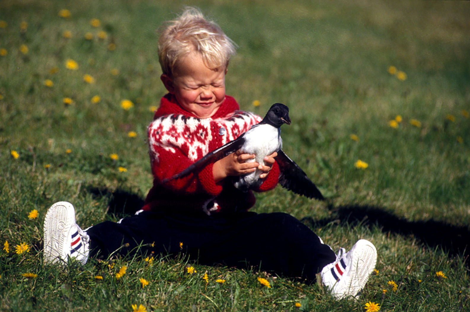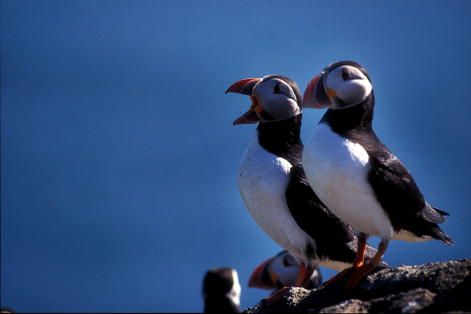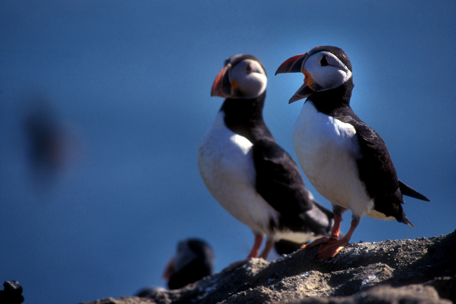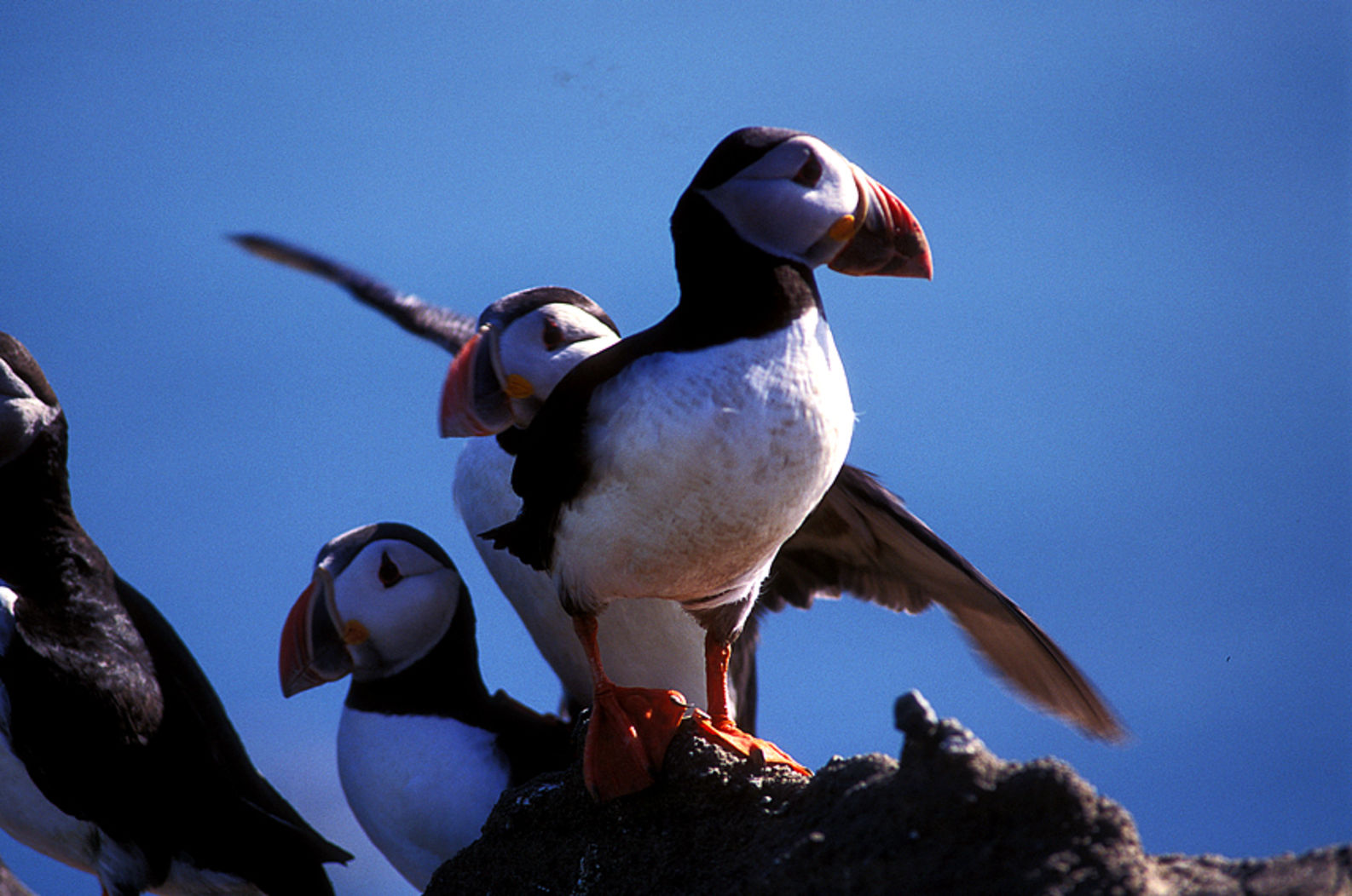 Aux Vestmann, la chasse aux macareux à ses règles, seuls les mâles sont visés, uniquement en juillet. Honte à celui qui à celui qui chasserait les nouveaux nés tapis au fond des terriers. Le macareux est le seul oiseau européen à creuser, de son bec et de ses pattes, un profond nid terrier pour y abriter son oeuf. Armé d'une longue épuisette, le chasseur n'a aucun mal à attraper sa proie, 40000 macareux se laissent piéger chaque mois de juillet. Chaque mois d'août, pendant leur baptême de l'air, les oisillons s'echouent dans la ville ou les enfants les attendent pour une mission de sauvetage.