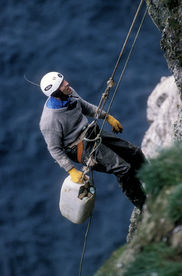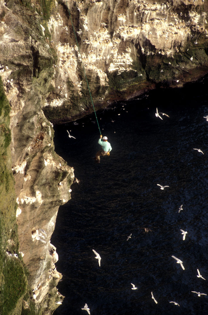 Les iles Vestmann, archipel sauvage et isolé au sud-ouest des côtes islandaises, abritent 5500 habitants et six millions de macareux (dit clown des mers à cause de leur oeil cerné de noir ) Par tradition, chaque année, les hommes des Westmann affrontent les falaises pour ramasser les oeufs de guillemot qui sont très appréciés par les islandais. Tant de risques pour quelques oeufs, ce rituel du fond des âges fait passer les hommes de l'ouest pour un peu fou aux yeux des autres Islandais.