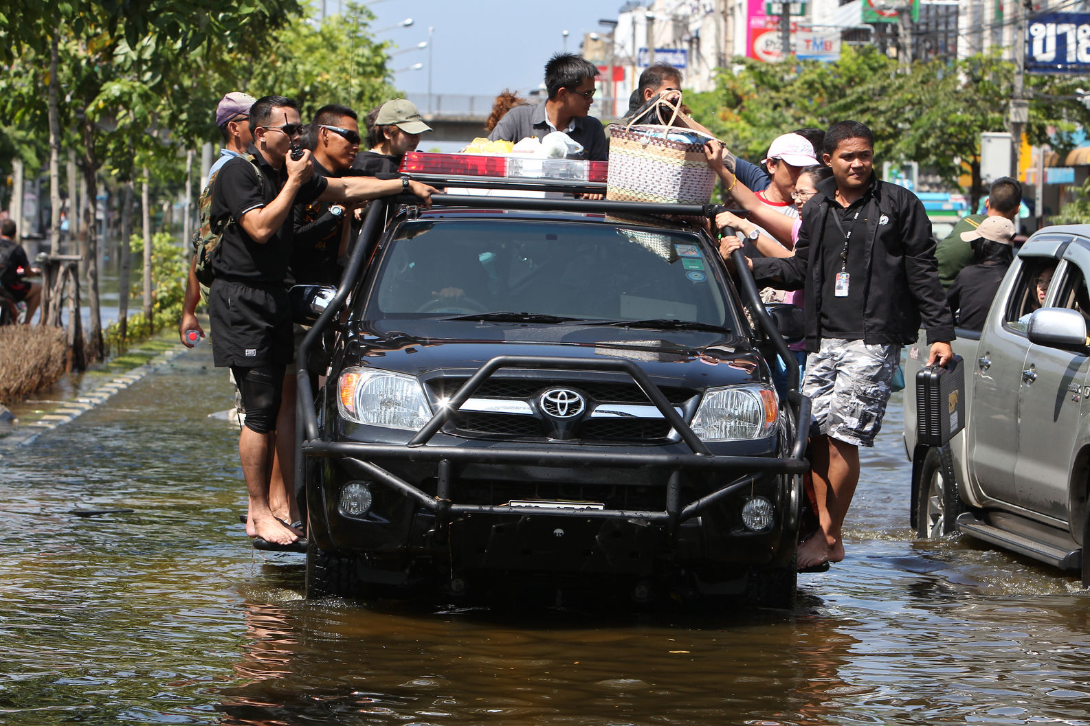 Les autorités thaïlandaises tentent d'empêcher que le centre de Bangkok ne soit inondé ce week-end. Et incitent ses habitants à quitter la ville. Les inondations qui touchent le pays depuis août risquent de coûter cher à l'économie du pays.